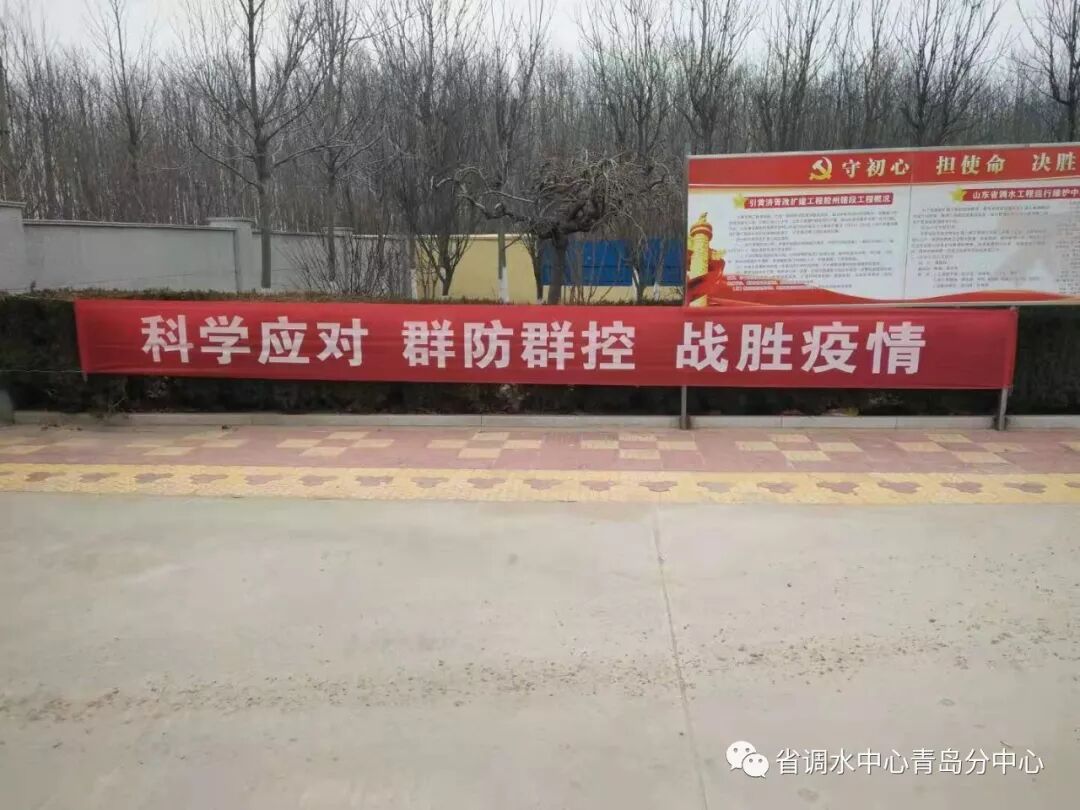我站深入贯彻落实习近平总书记关于新型冠状病毒肺炎疫情的重要指示精神,按照上级有关具体要求,迅速安排部署疫情防护工作措施。一是及时成立“山东省调水工程运行维护中心胶州管理站防控领导小组”,加强疫情防控工作部署与落实。二是研讨制定工作方案。单位主要领导抓总体,按照上级要求及时针对疫情作出部署,第一时间安排落实疫情防控应急物资,通过多方渠道先行购置1200斤高浓度84消毒液、300斤75度医用酒精、600只一次性医用防护口罩等应急物资,并亲自到机关和一线部署防控措施,督导落实;各部门负责人抓具体,在管理站统一部署下严防严控,将疫情防控措施贯彻至每一名职工,从上到下形成合力。