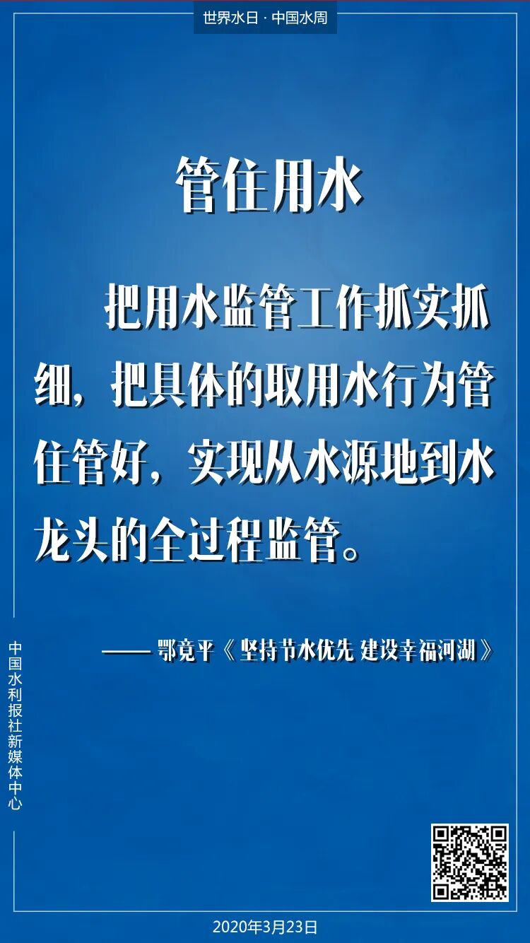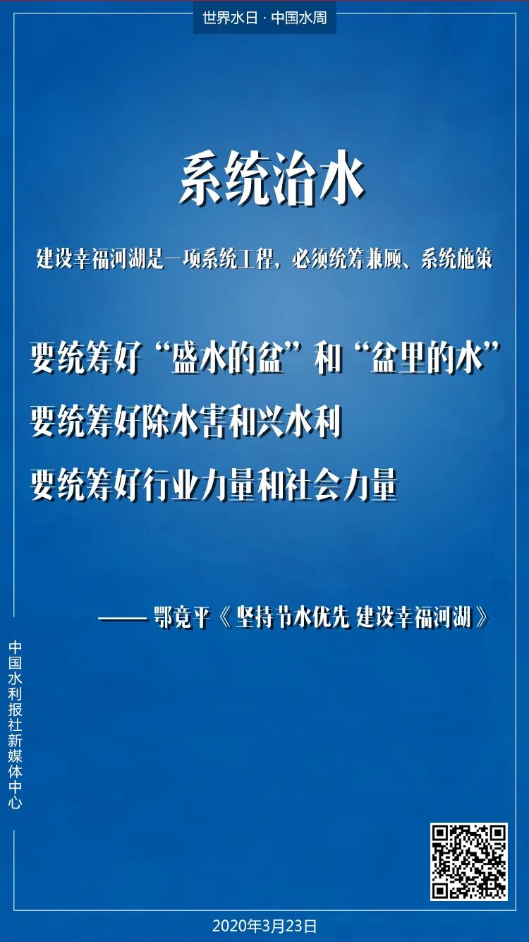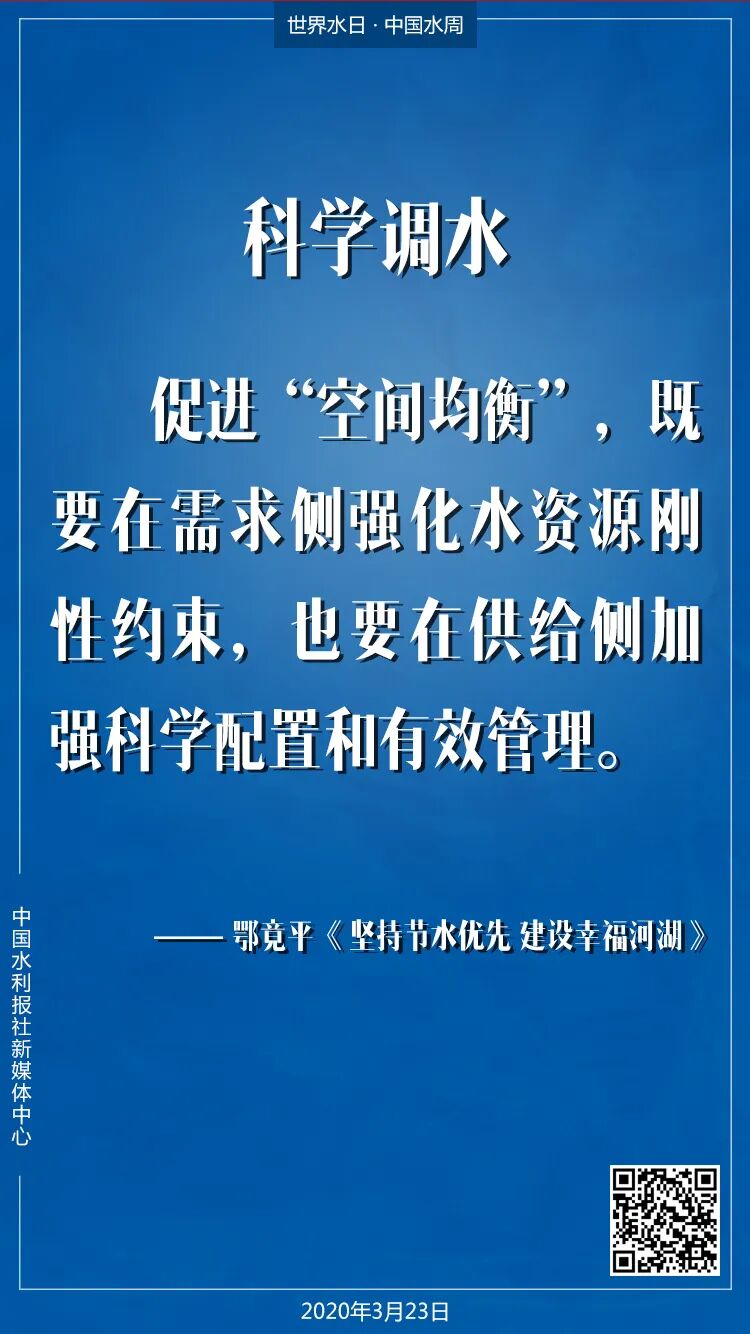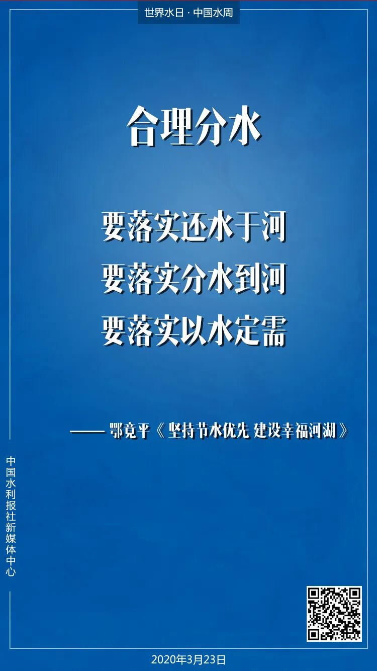 2020年“世界水日”“中国水周”来临之际,水利部党组书记、部长鄂竟平在《人民日报》发表署名文章《坚持节水优先 建设幸福河湖——写在2020年世界水日和中国水周之际》。